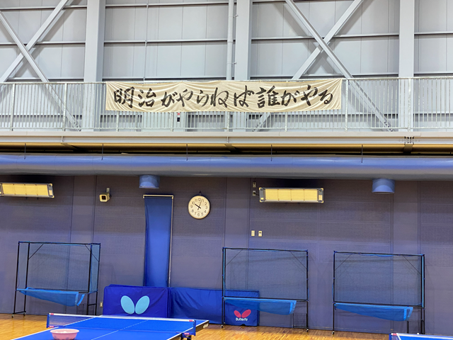学生のエキシビションマッチは本番さながらの最高のプレーを見せていただきました。イベントの最後にはジャンケン大会で明治Tシャツや明治グッズのプレゼントがあり、皆さん楽しんで帰られました。